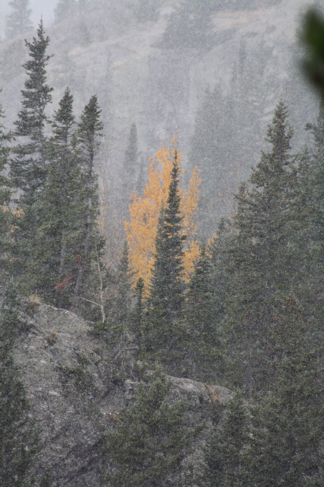 We went up to Rocky Mountain National Park today and were excited to see the snow falling. Ella told us that if we were quiet on the walk around Bear Lake, then the snow would start falling harder. She was right. I'm ready for Fall and Winter. I was suprised to see as much color still in the aspen trees. The beauty of Colorado will always amaze me.
